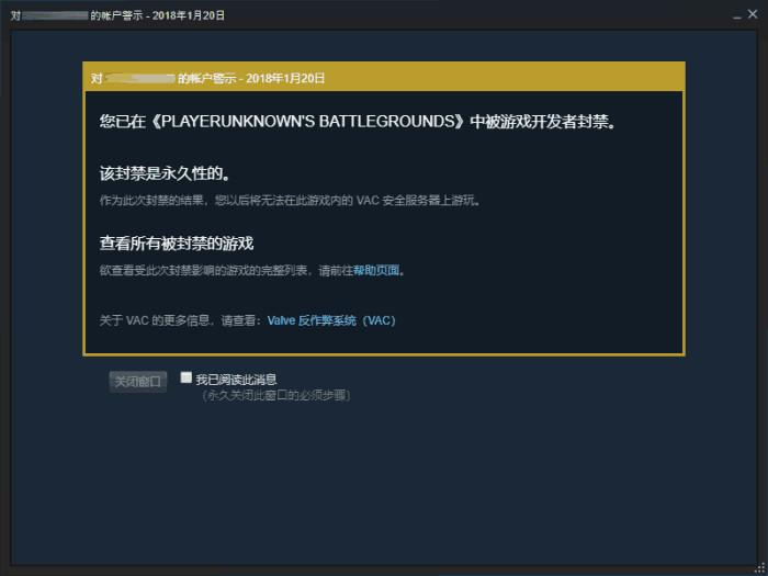 绝地求生1.提供STEAM保险公司VAC封号查询或者信息提醒邮件截图(可参考此方式查询https://jingyan.baidu.com/article/1709ad80f8cd210634c4f0d7.html)2.游戏登录界面提示截图3.与客服沟通的具体封号时间及原因的截图图1
